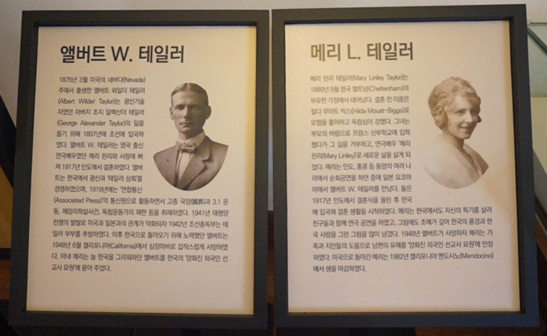 그리고, 테일러 부부는 일제에 의해 추방되게 되는데요, 바로 1941년에 태평양 전쟁을 일제가 일으키면서 한국에 거주하던 적국 국민들을 수용소에 구금했다가 1942년 추방하게 된 겁니다. 결국 이후로 테일러는 한국으로 돌아오기 위해 백방으로 노력했으나 결국 1948년 심장마비로 사망하게 되죠.