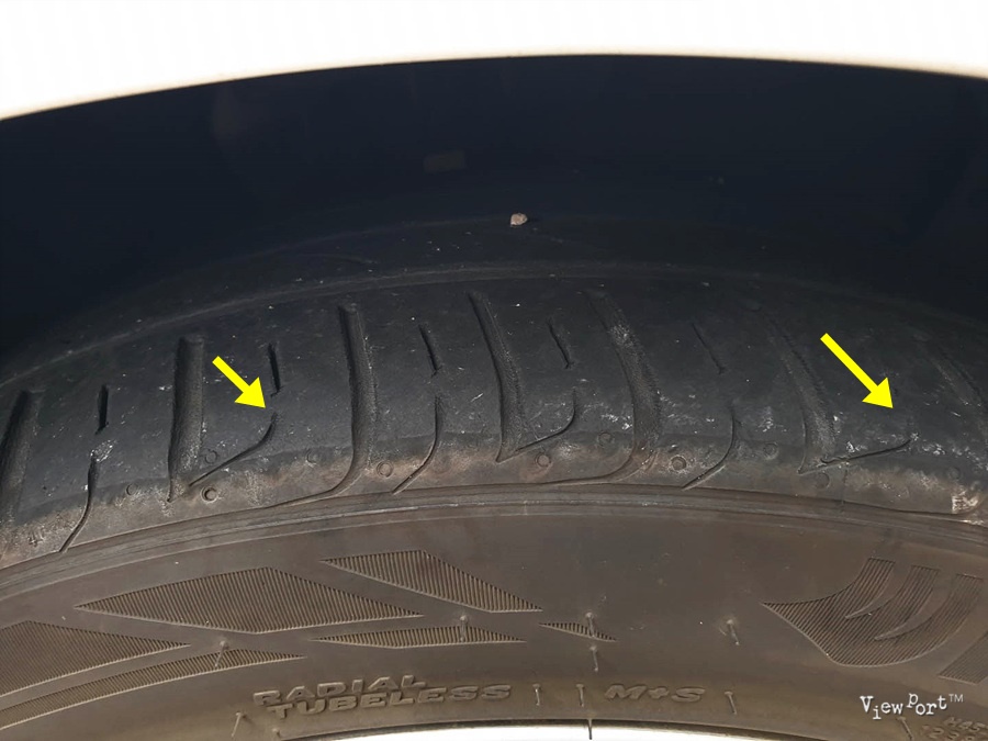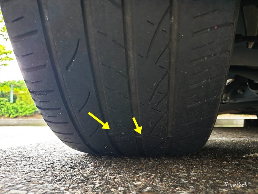 이미 타이어의 횡방향 그루브들이 다 닳아 없어진 부분들이 꽤 보입니다.