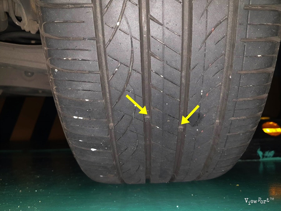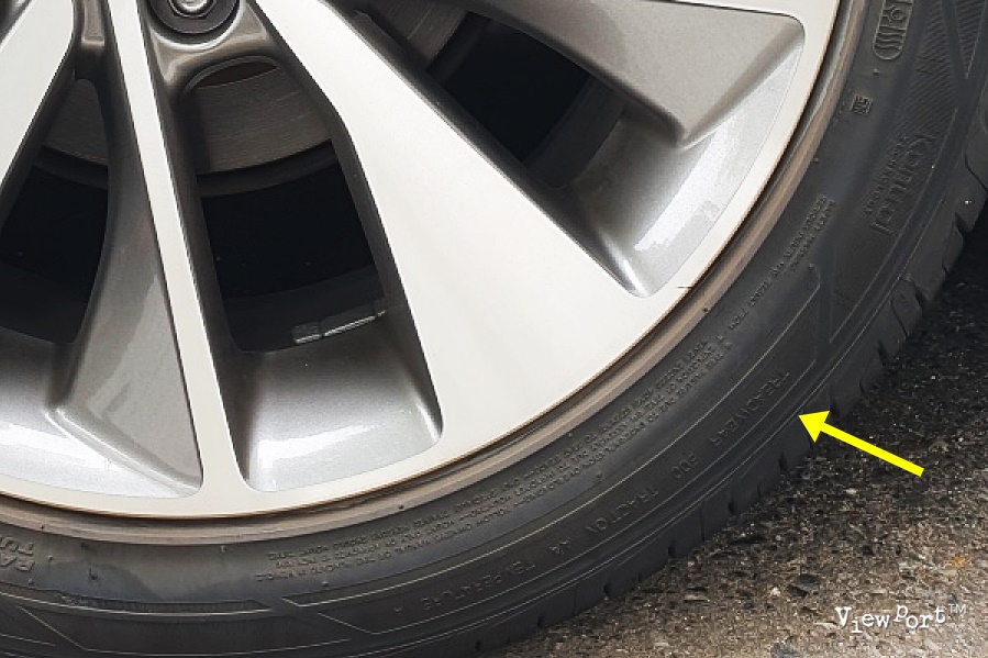 보통 잘 모르시는 정보 중 하나가 요기 트레드웨어 (슬립사인) 입니다. 제 타이어에 적힌걸 보면