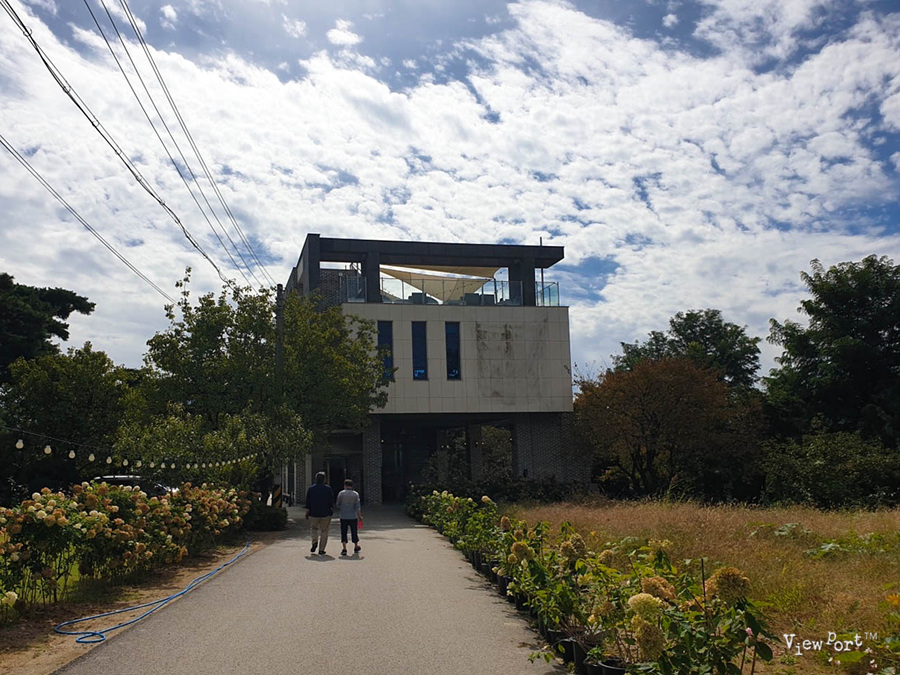조정경기장쪽 방향으로 보이는 카페 건물이예요.