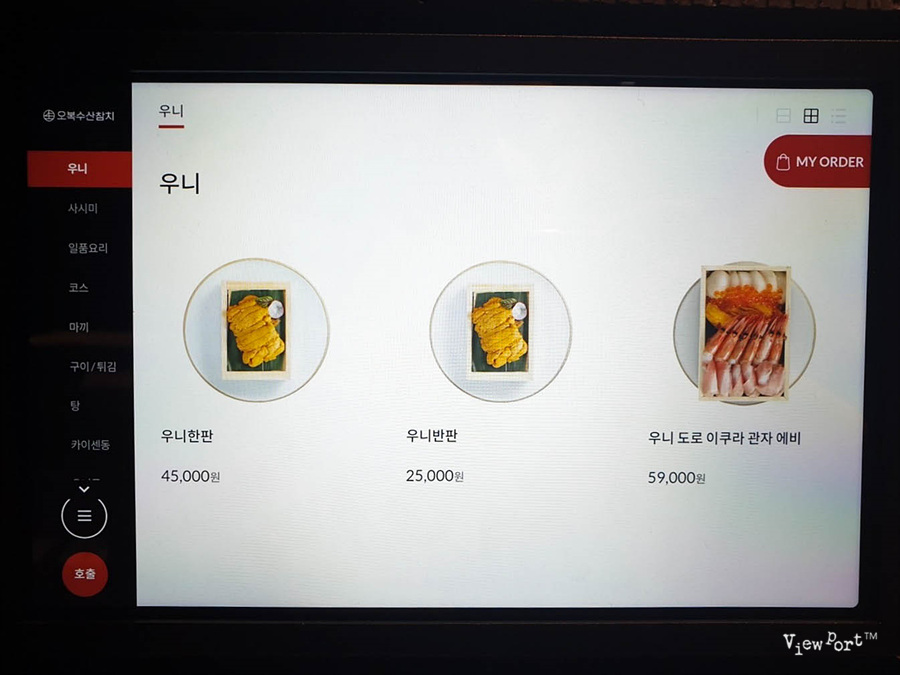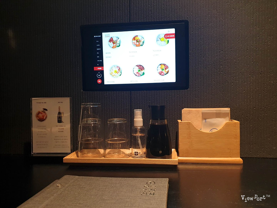 음식을 주문하는건 앞에 테블릿형태의 키오스크가 있어, 여기서 메뉴를 골라 주문을 입력하면 됩니다.