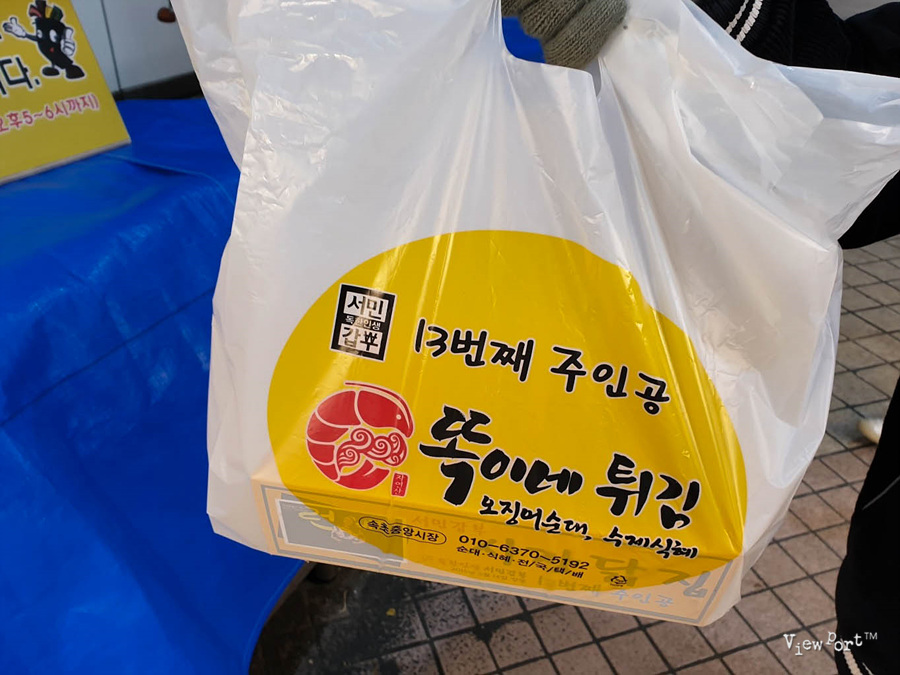 닭강정 하나와 아바이순대를 포장으로 가져왔습니다