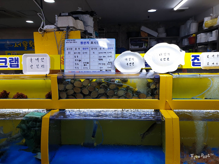 나와서 활어회코너로 들어갔는데요, 너무 늦게 가서 마무리를 하는 가게들이 많았어요