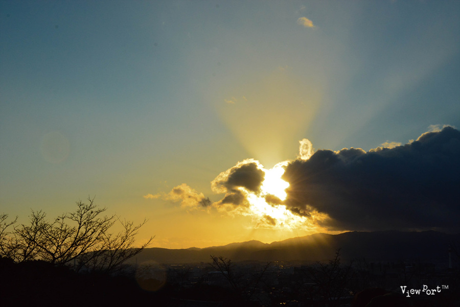 비온뒤라 카메라 렌즈에 맺힌 빗방울에 보케가 생기고, 어두운 하늘 사이로 노란색 레이저 빔이 내려오는 것 같은 환상적인 하늘을 보면서 청수사를 방문한 보람을 느껴봅니다.