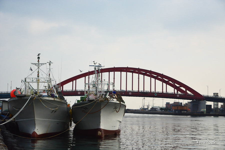 뒤에 보이는 설악대교 아래로 바다와 연결되는데요, 바다에서 돌아온 어선들이 정박중입니다