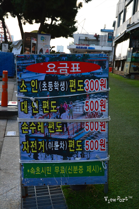 이용 요금은 편도 기준으로 대인 500원 소인 300원이고, 속초 시민은 무료 예요 (신분증 제시가 필요하다네요)