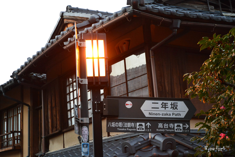 산넨자카를 내려가서 쭉 따라가다 보면 아래처럼 니넨자카와 야사카탑을 가는 갈래길 표지가 나옵니다.