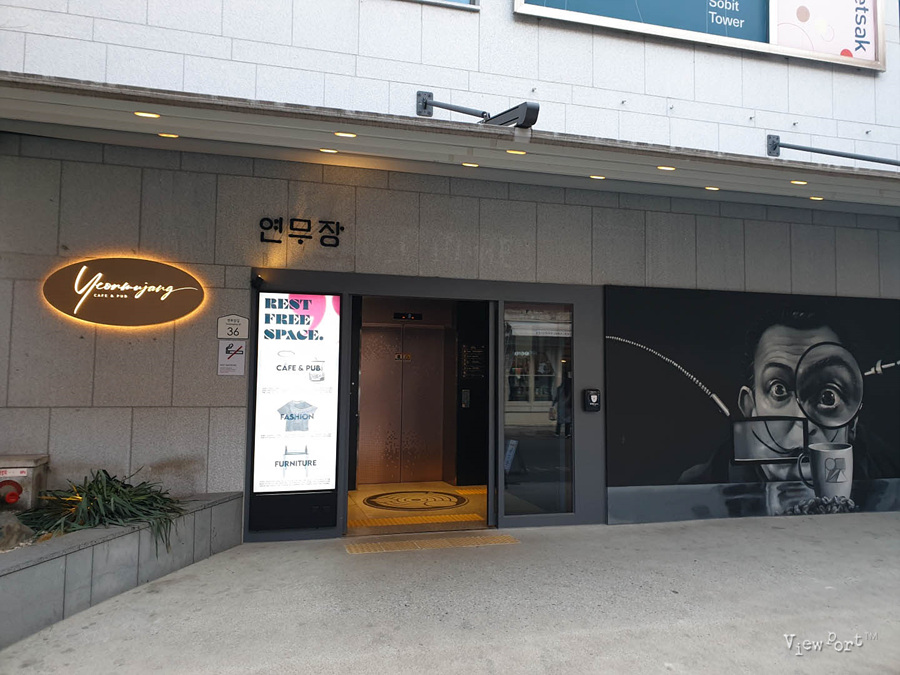 카페 연무장. 엘리베이터 타고 올라가서 저녁이면 이 근방 야경을 볼 수 있는 카페인데 꽤 많이 알려진 곳 중 하나죠