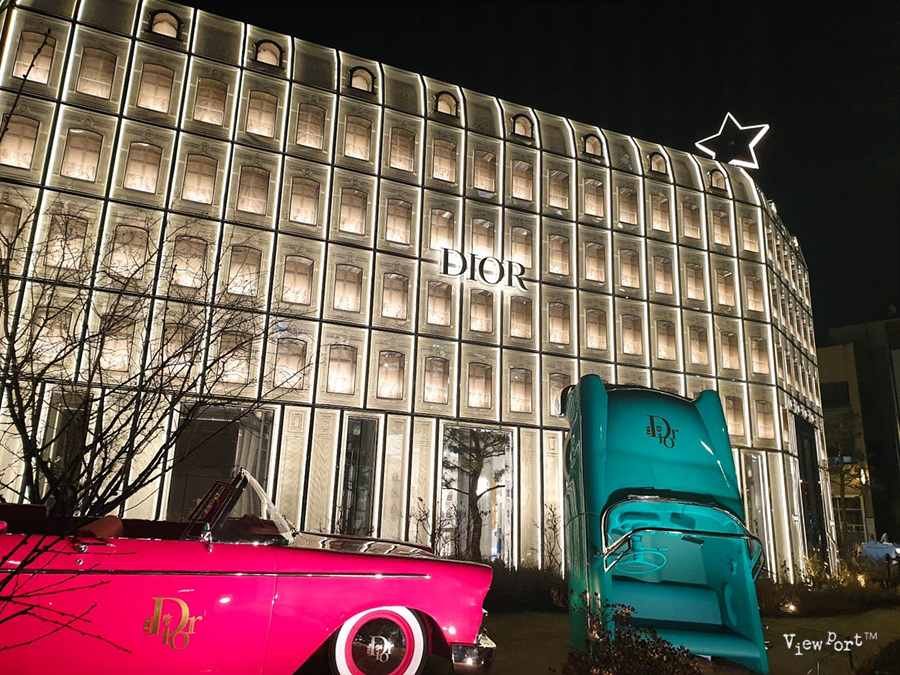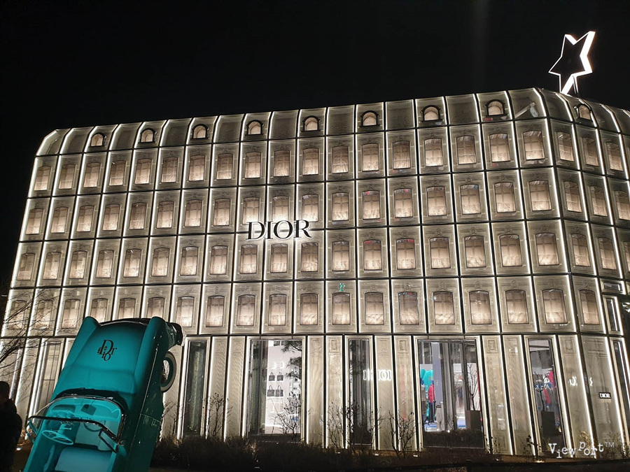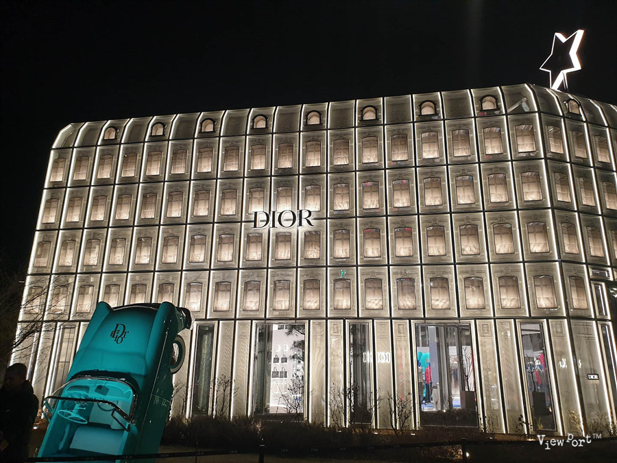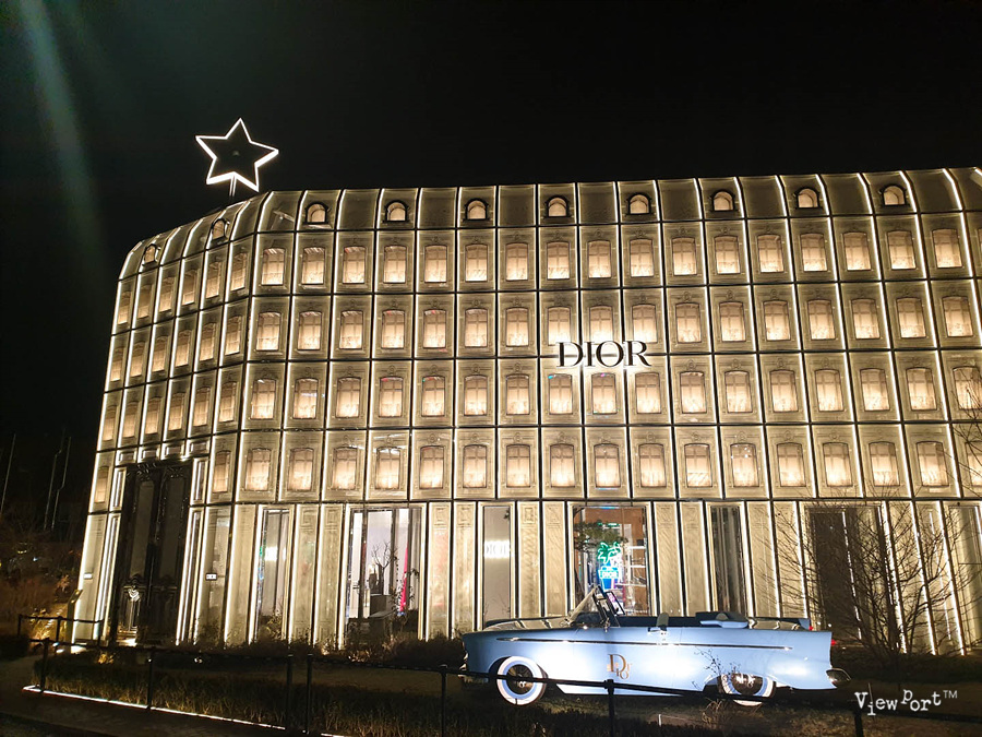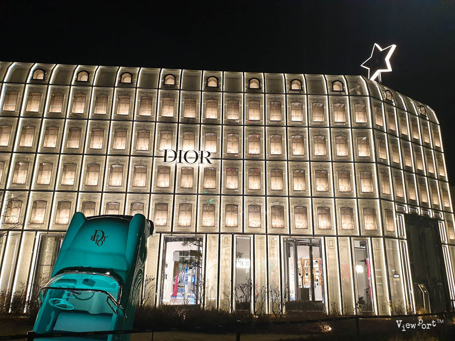 디올 컨셉스토어는 건물 구조상 특히 저녁에 야경이 멋지기로 유명한데요, 낮에 본 디올 컨셉스토어부터 저녁에 조명이 켜진 디올 컨셉스토어의 야경까지 같이 보시죠