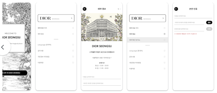 디올 컨셉스토어에 예약하는 방법은 휴대폰 앱을 깔으셔야 해요