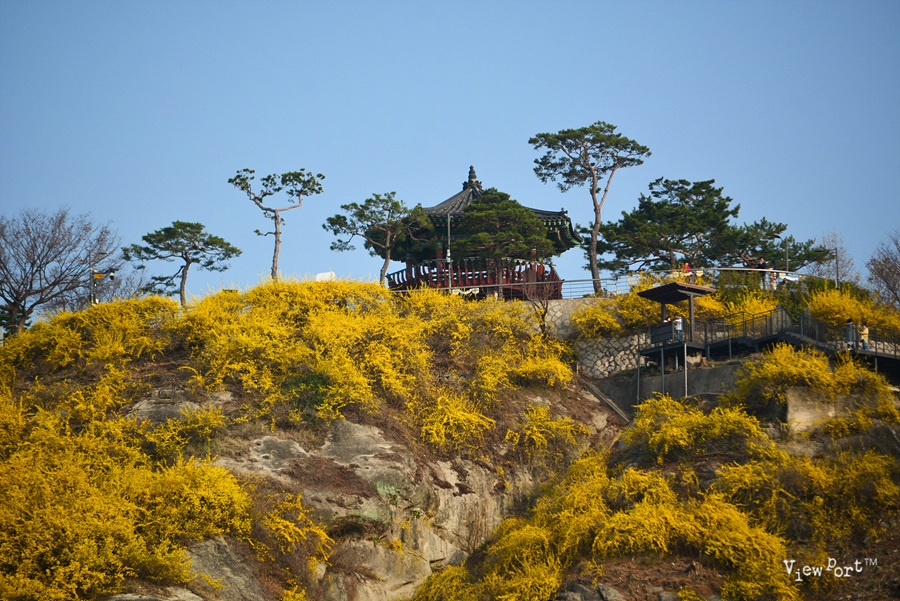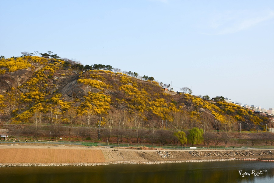 응봉산 일대의 바위 산을 노란 개나리가 뒤덮은 모습은 정말 대단하죠