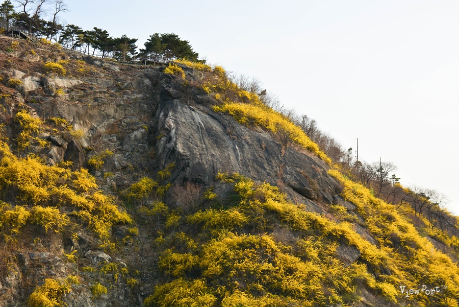 응봉산은 특이하게 바위산 중간 자락마다 개나리들이 자라고 있어서