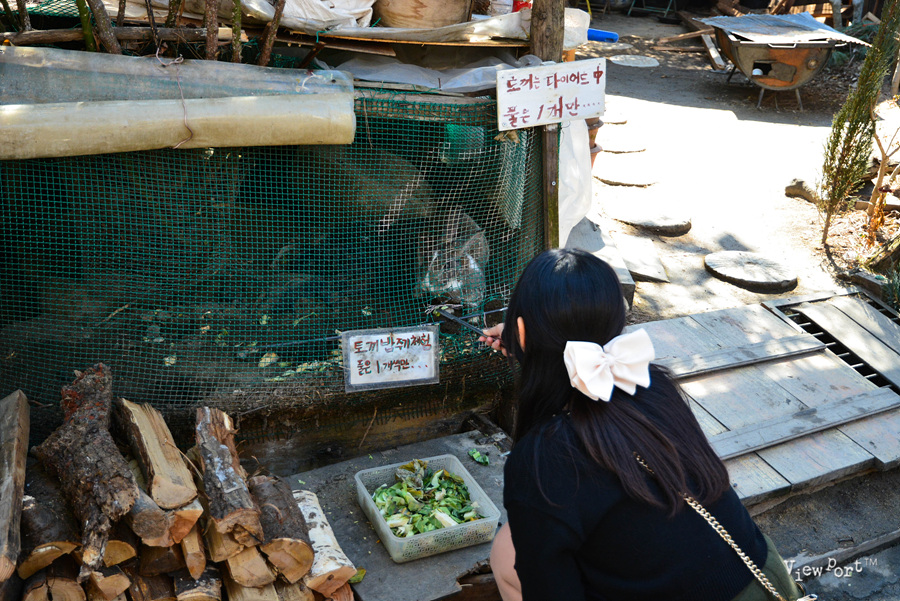 여기는 토끼 사육장인데, 토끼 밥주기 체험도 할 수 있어요
