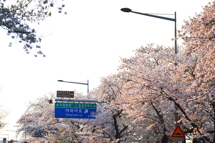 벚꽃 행사 올때마다 그 지역의 랜드마크를 하나씩 넣어 사진을 찍는데, 여의도는 이런 도로 표지판이 딱 눈에 들어 오네요.