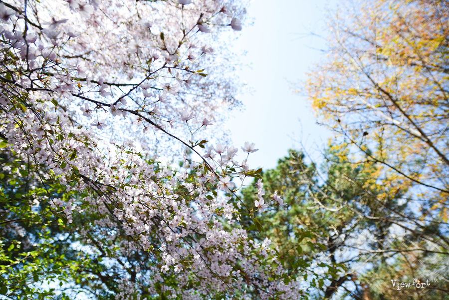 계단을 오르는 중에도 파란 새 잎이 돋는 나무들과 분홍색 진달래 꽃, 그리고 조금 늦은 벚꽃들이 서로 섞여있는 진달래동산은 참 예뻤습니다.