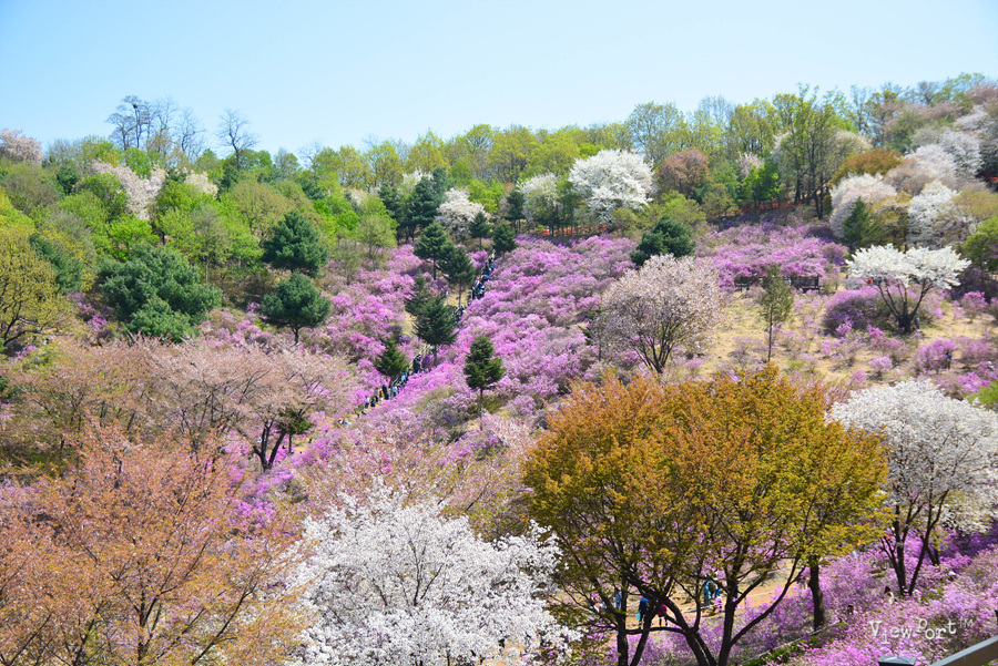 정면에서 가장 오른쪽 길을 따라 전망대에 올라봤는데, 위치마다 보이는 진달래 동산의 모습이 전혀 다릅니다