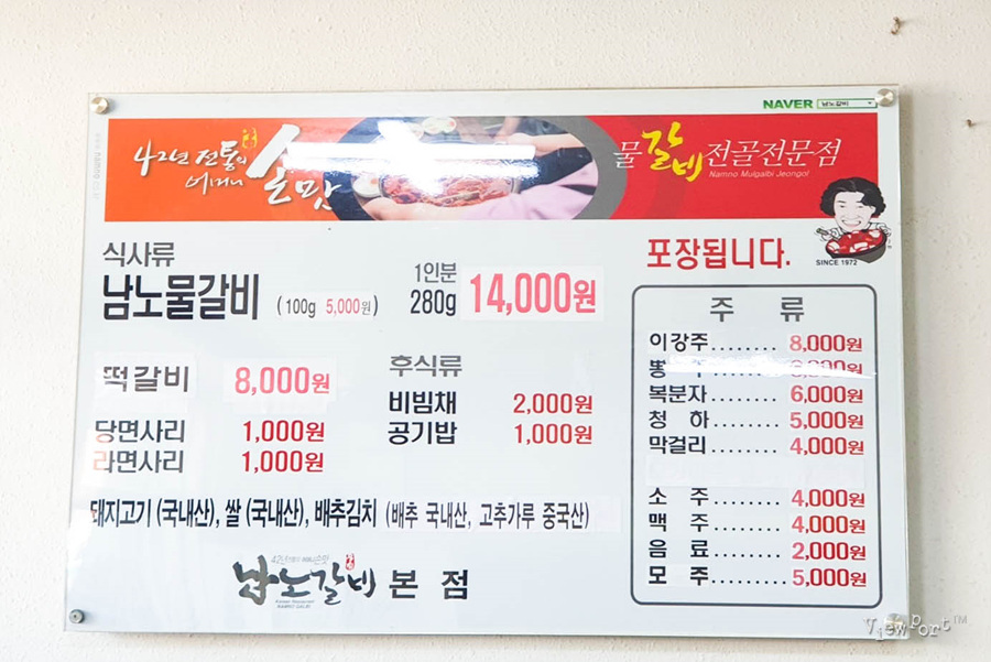 메뉴는 아주 간단합니다. 그냥 "남노물갈비" 이겁니다.