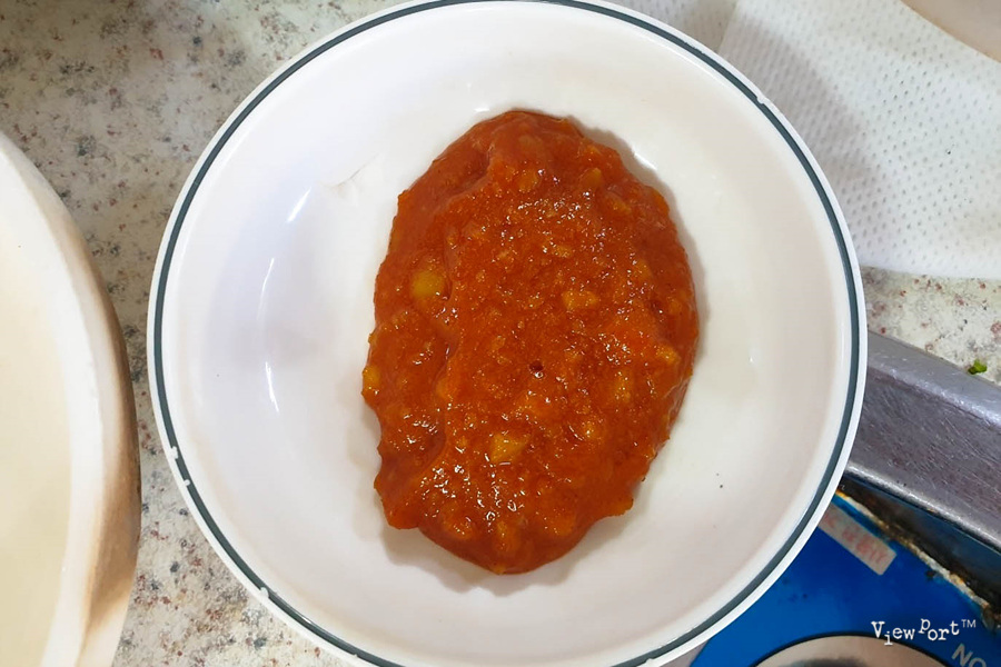 먼저 더 불기 전에, 양념이 베인 당면을 앞접시에 옮겨 담아 맛을 봅니다.
