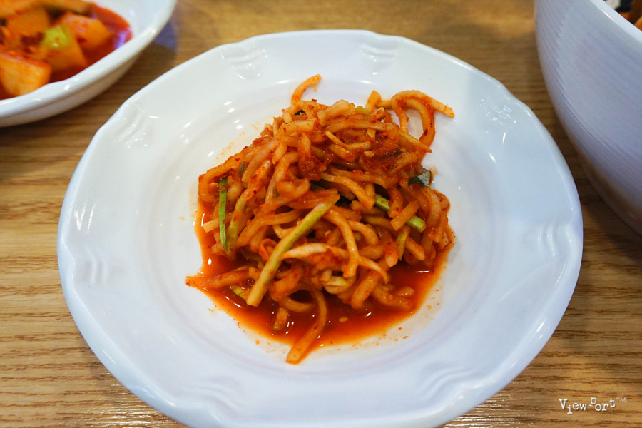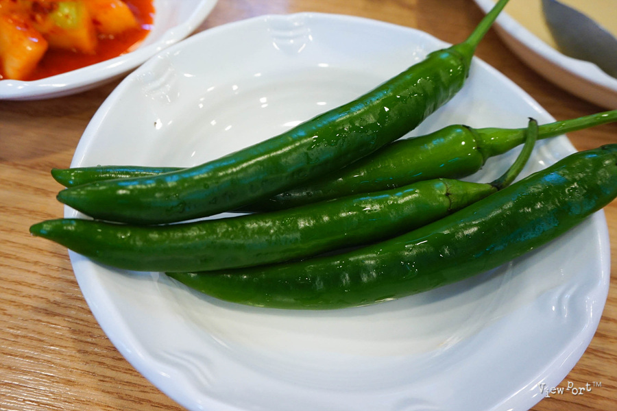 깔끔한 뒷 맛을 책임질 고추와 무채, 그리고 깍두기가 밑반찬으로 나와요