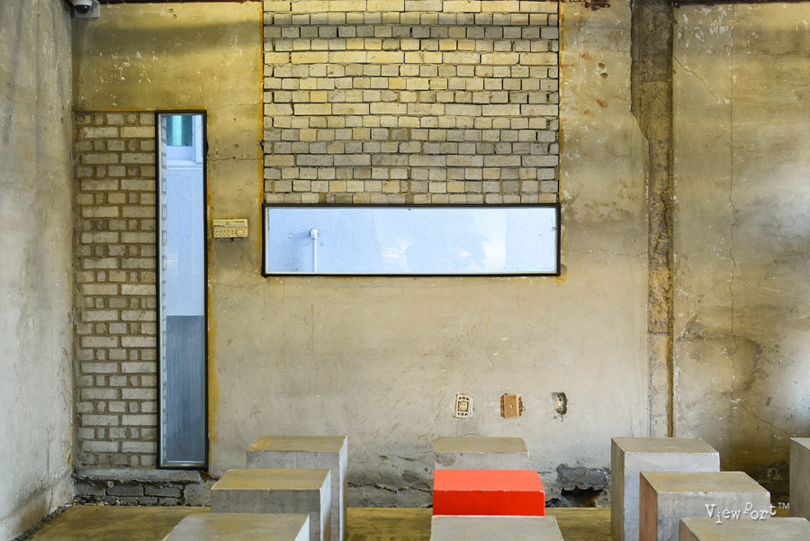 오래된 구축 상가건물 같은데, 벽을 헐어낸 모습을 그대로 노출시켰고,