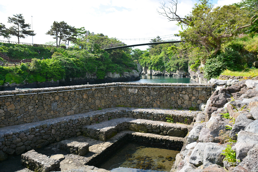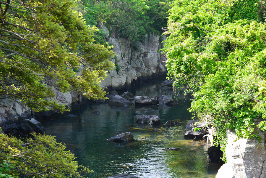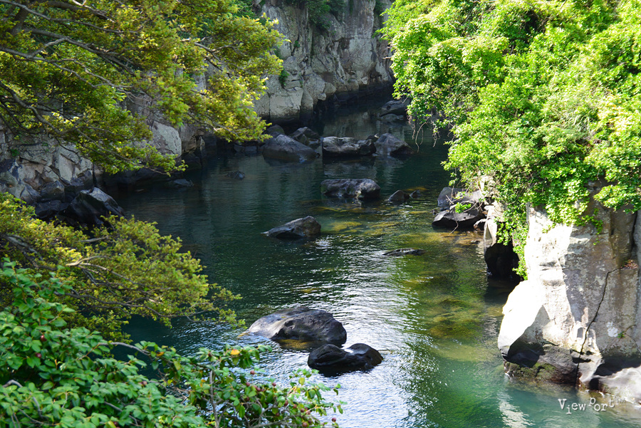 용연계곡은 산에서 내려오는 한천의 물이 바다로 유입되는 곳으로, 계곡 양편이 용암이 흐르며 굳은 주상절리로 이루어져있고, 푸른 물빛이 아름다운 곳입니다. 그리고 또 하나, 계곡이지만 산이나 그런데가 아니어서 전혀 힘든 곳도 아니구요.