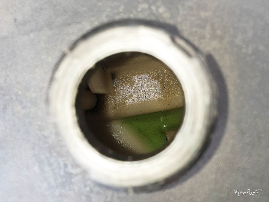 역시 전문 기술자분들 답게, 누수 흔적을 찾아냈습니다. 그냥 볼땐 복잡한 배관사이라서 안 보였는데, 녹색의 누수 흔적이 남아 있는 걸 볼 수 있습니다.