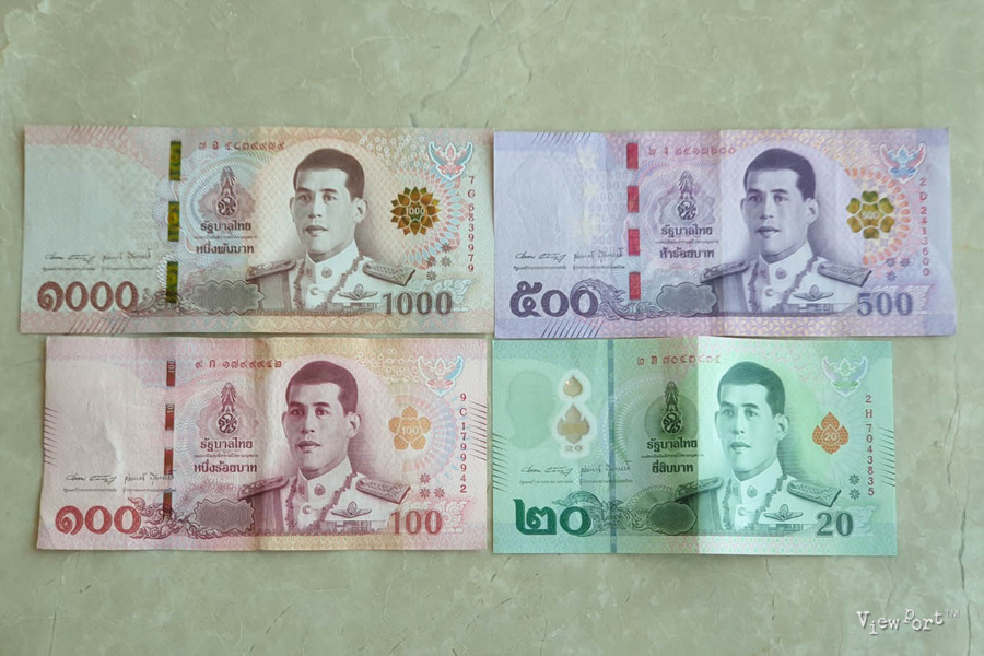 지폐에는 현재 태국 국왕의 초상이 그려 있는데, 지폐마다 다른 인물이 그려있는 우리나라와 달리 모든 지폐에 태국 국왕의 초상이 그려 있습니다.