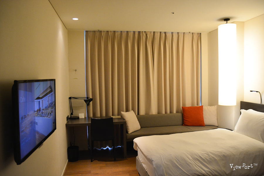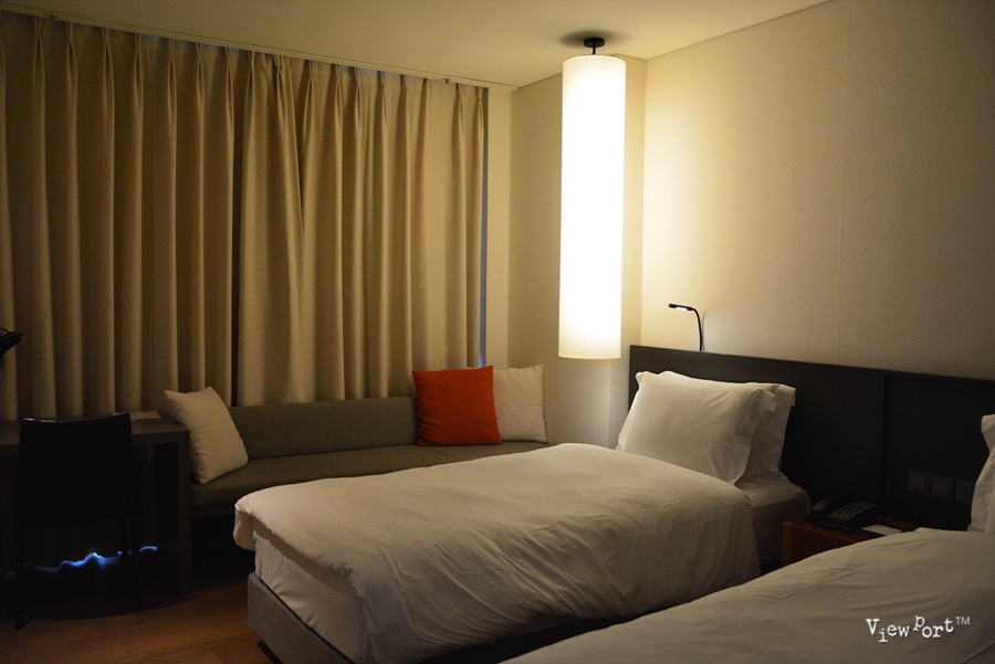 방은 트윈룸, 딱 침대 두개 정도의 공간으로 크게 공간이 넉넉하지는 않았고, 전망도 바로 앞에 건물이 막혀 있어서 그냥 커튼으로 닫아뒀습니다 ^^