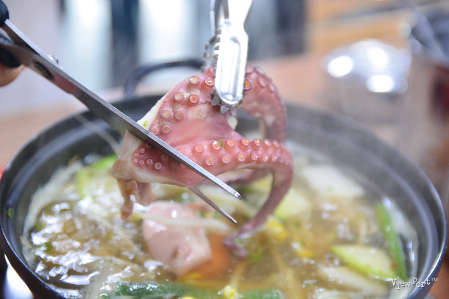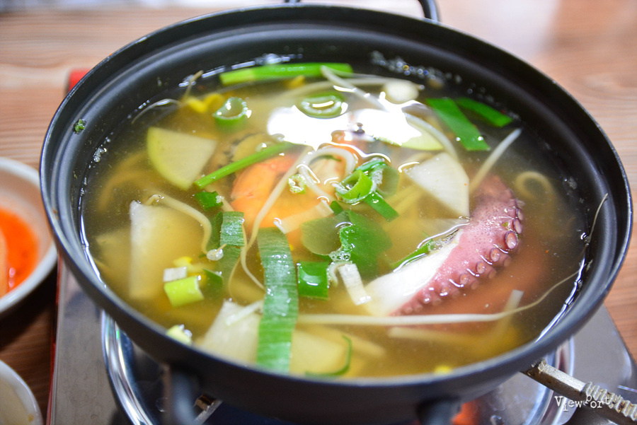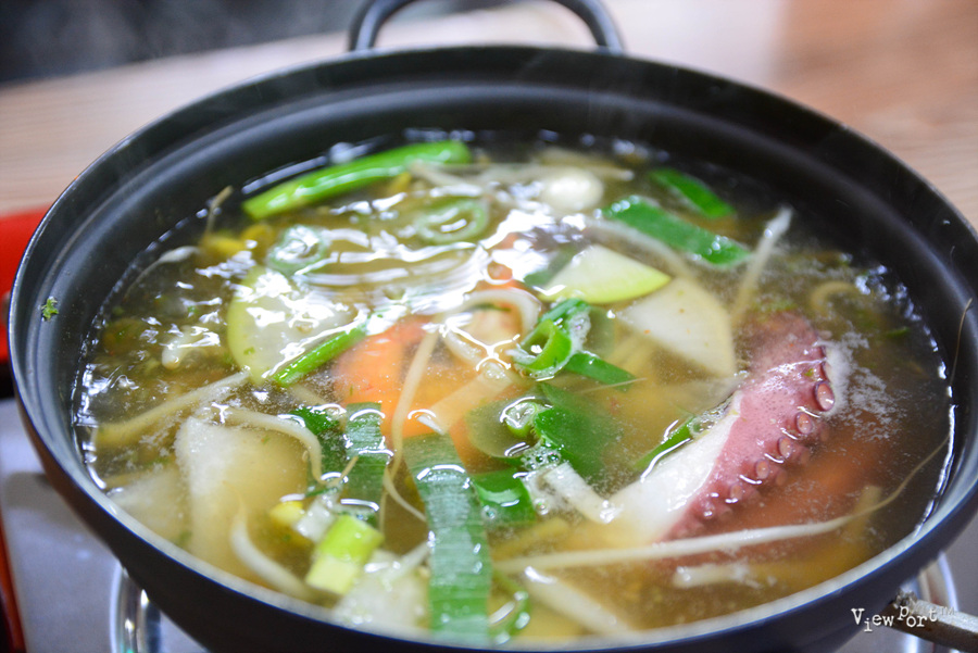해물 맑은탕이 먼저 나오는데, 문어와 새우 기타 해물들이 들어 있는데, 해물이 아주 풍부한건 아니네요