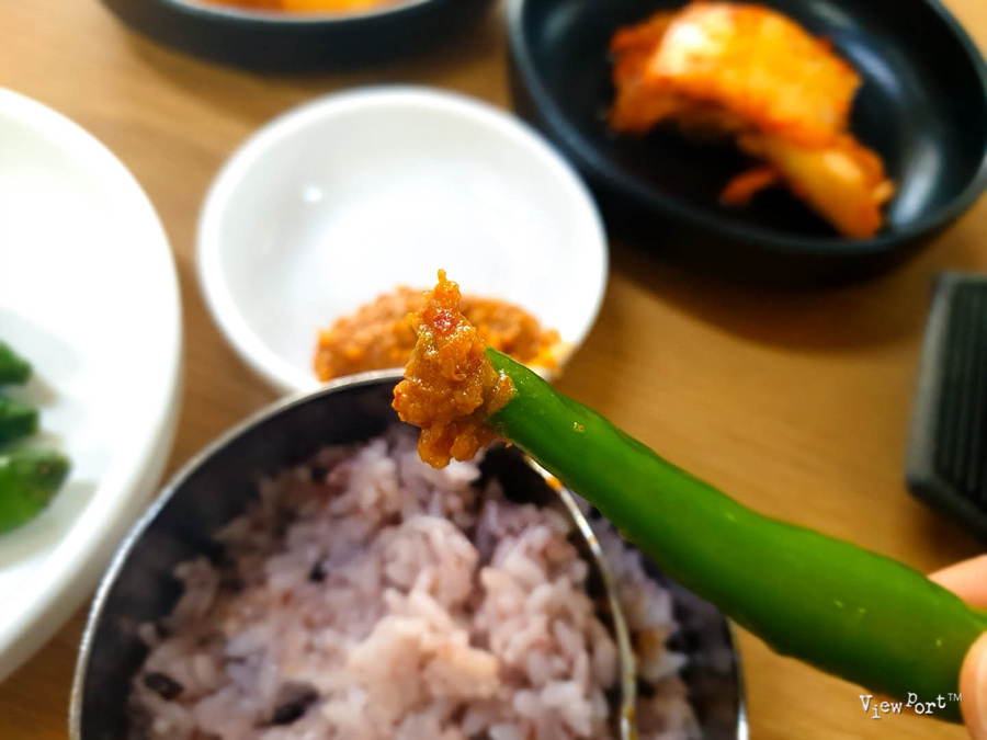 같이 나온 고추에 된장찍어 한입 크게 베어물었다가 매워서 혼났습니다