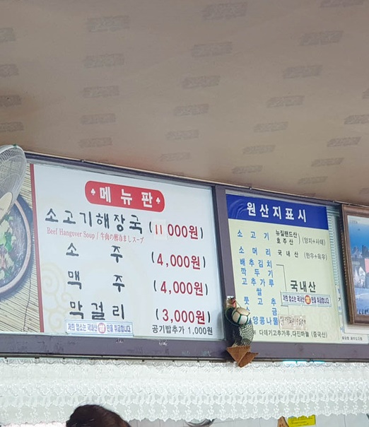 소고기해장국은 11000원, 뭐 다른거 볼 거 없이 바로 소고기해장국을 주문했어요.