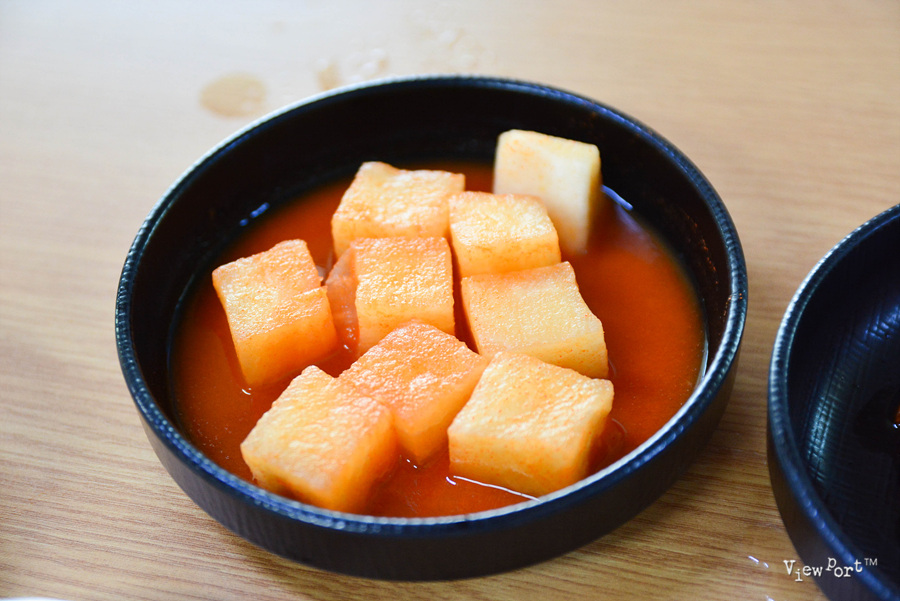 깍두기는 약간 신맛이 나고 고추는 꽤 맵네요.
