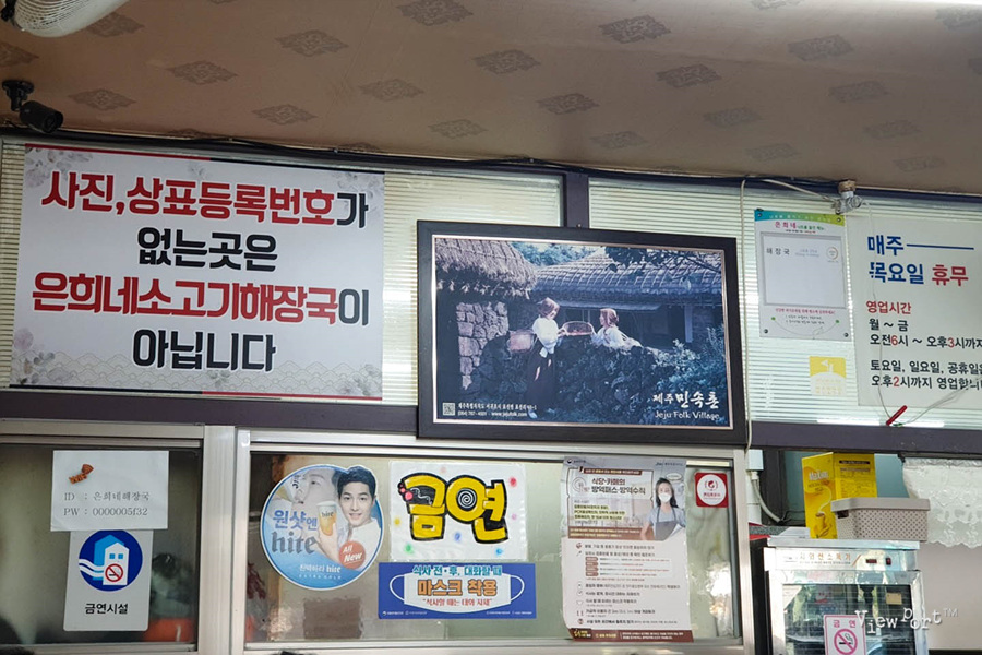 여러 상표권 소송이후 은희네 소고기해장국 본점은 간판에 주인 사진과 상표등록번호를 붙여 구분한다고 합니다.