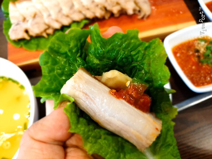 돼지고기 삶은게 마치 족발처럼 쫀득쫀득하고 탄력있는게, 기름까지 쪽 빠져서 고소하고 단백한 맛이 정말 좋거든요