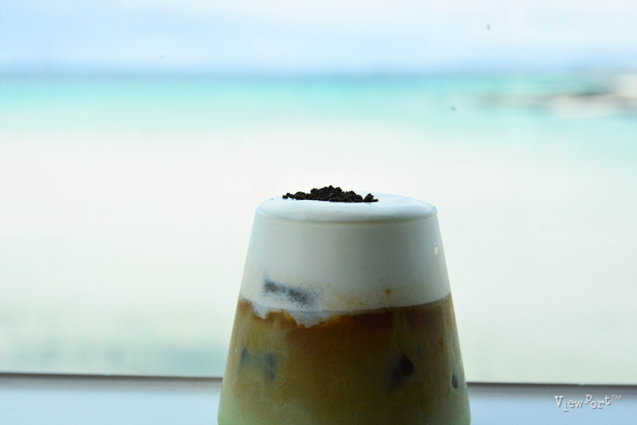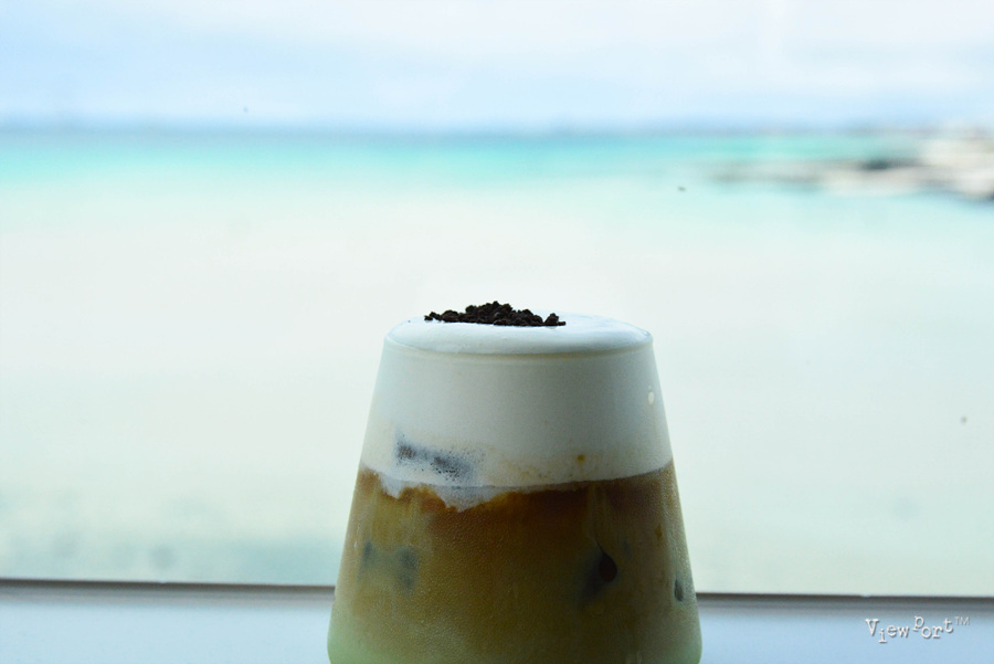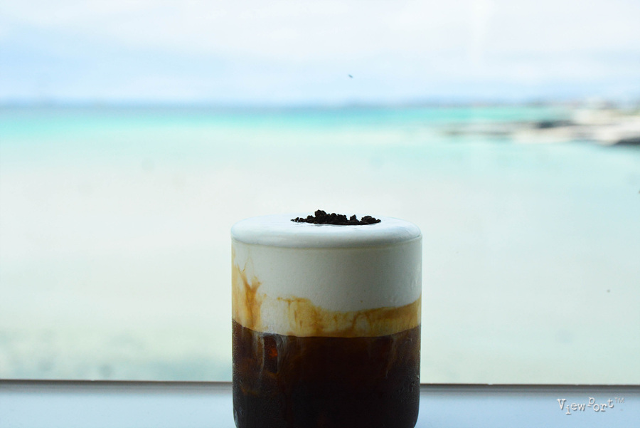 바다 배경으로 제주슈페너와 아인슈페너 한잔씩 올려놓고 인증샷을 하나씩 올려봤어요