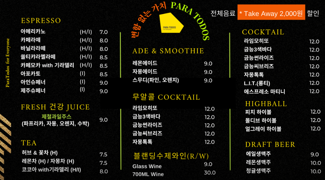전체적으로 음료 가격대가 좀 쎈 편이예요. 아마 이중에 바다 뷰값이 꽤 들어간것 같네요.