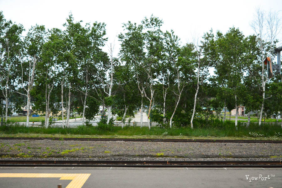 좁은 철길 뒤로 자작나무들이 심겨있는 모습들이 한가로워 보입니다