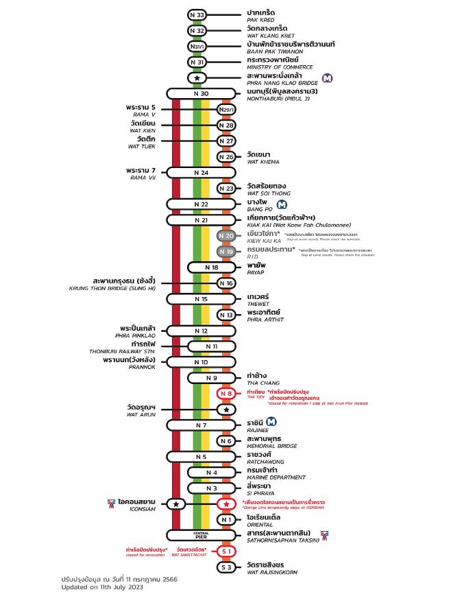 ● 수상버스 노선도와 요금 (차오프라야 익스프레스)