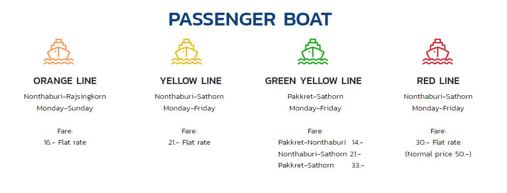 짜오프라야강을 지나는 일반 수상버스는 4종류가 있어요. 배의 꼬리에 붙어 있는 깃발의 색으로 구분을 하는데,거의 모든 정거장을 다니는 오렌지보트외에 노란색 옐로우보트 , 연두색 그린보트, 빨간색 레드보트가 있고 각각 요금들이 다릅니다.