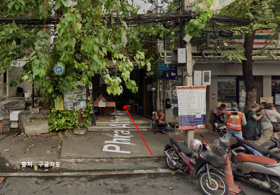 간혹 작은 수상버스 정류장은 입구가 정말 찾기 어려울만큼 작거나, 위 사진처럼 시장이나 건물들에 가려 있는 경우들이 있어요 (카오산로드가 있는 프라아티뜨 : 구글지도 가져옴)