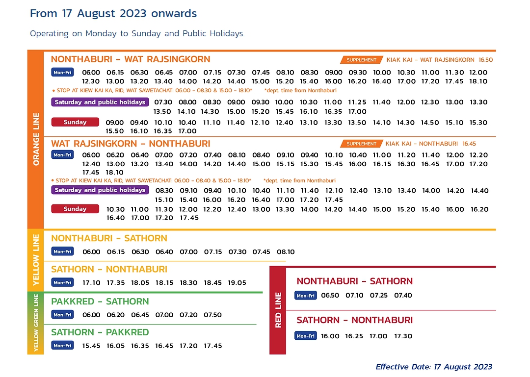 오렞지보트와 옐로우,레드보트는 요금이 16밧, 21밧,30밧으로 정해져 있고, 그린보트는 구간별로 요금이 다릅니다