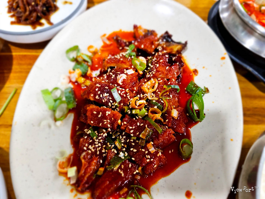 다만, 기름이 좀 많아요. 처음엔 모르겠는데, 계속 먹다보면 기름이 배어서 처음의 쫀득한 식감이 없어지고 오일리해집니다. 서울에서도 황태구이는 뜨거운 자기나 철판에 올려주는데, 좀 아쉽네요.