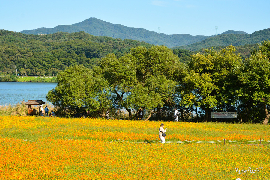 다른 곳들과는 다른게, 주황색 황국화가 핀 들판 뒤로는 북한강이 유유히 흐르고 있어 정말 경치하나는 어디 내놓아도 손색이 없는 곳이예요