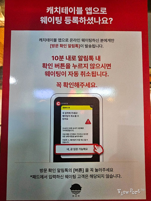 예약은 케치테이블로 할 수 있는데, 시간을 못 맞추면 두번까지는 순서를 맨 뒷번으로 미룰수 있어요.