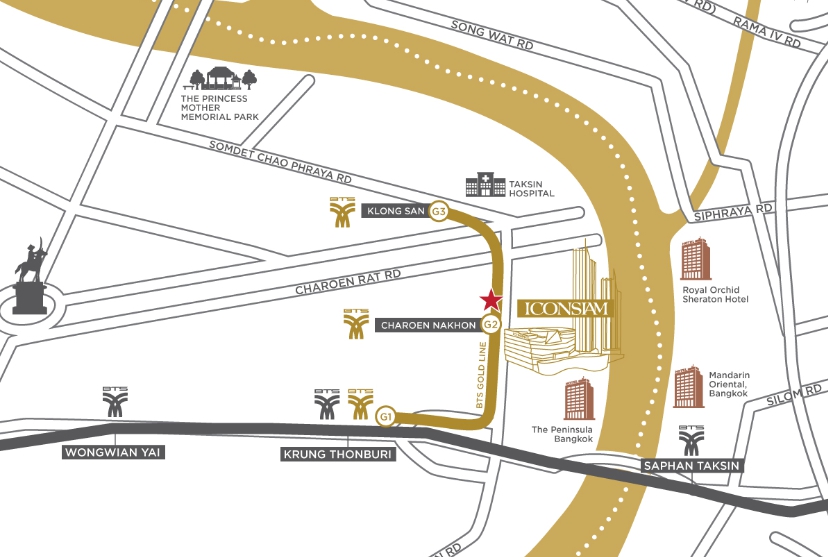 아이콘시암의 대중교통 약도는 아래 지도를 참고하시구요.