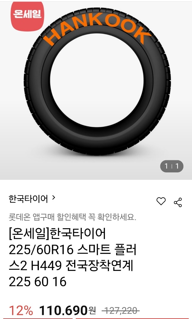 실제 타이어 가격은 신품대비 2/3가격이지만, 운송비 설치비등을 다 계산하면 반가격 정도 하네요