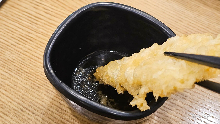 얼른 꺼내서 툭툭 털어주고 튀김간장에 찍어주면