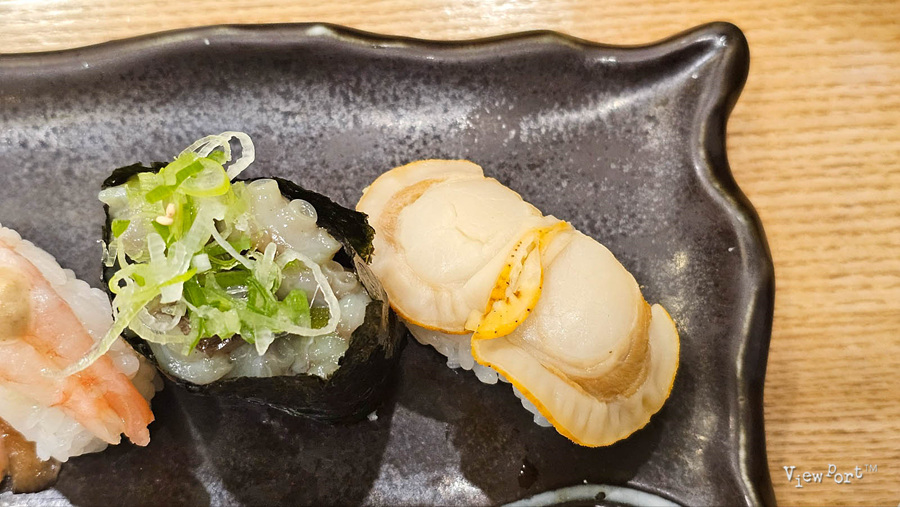 조미가리비는 가리비의 쫀득한 맛이 연어초밥과는 아주 다른식감을 느낄수 있게 해 줍니다