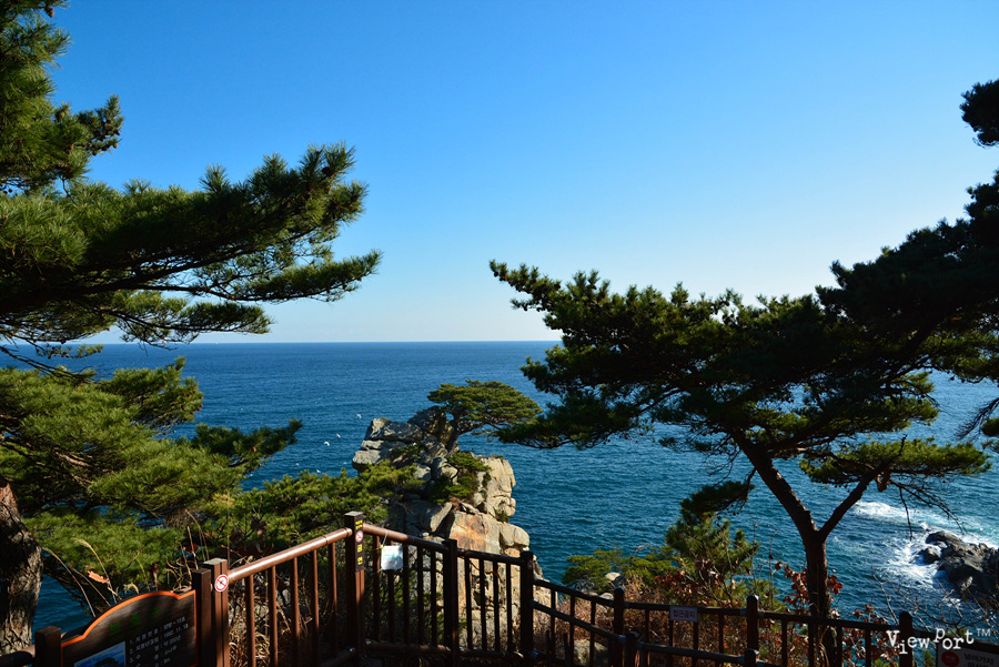 기암절벽 위에 서 있는 소나무를 배경으로 동해바다의 푸른경치를 즐길수 있어 유명해진 곳입니다