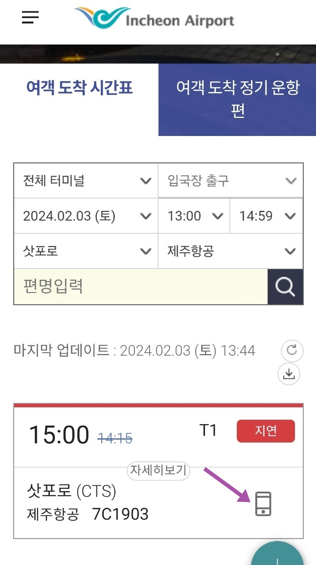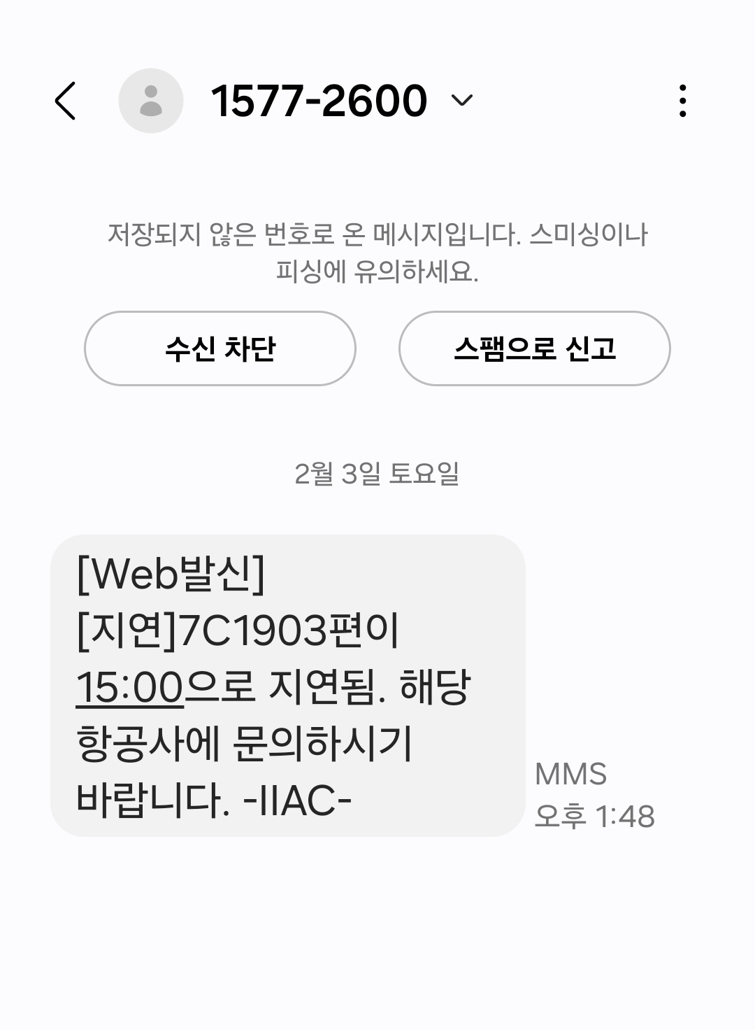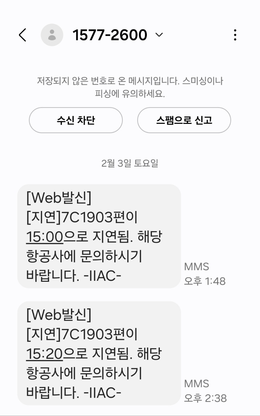 인천공항 비행기 도착 시간 안내 및 도착 지연 문자 알림 서비스